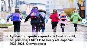 Ayudas transporte segundo ciclo ed. infantil, ed. primaria, ESO, FP básica y ed. especial 2025-2026